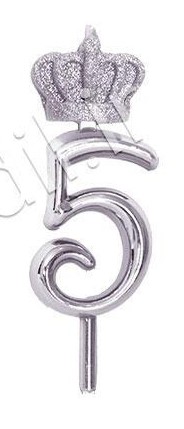 شمع عددی تاجدار نقره‌ای با طراحی خاص و زیبا، جلوه‌ای متفاوت به جشن شما می‌دهد.