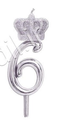 شمع عددی تاجدار نقره‌ای با طراحی خاص و زیبا، جلوه‌ای متفاوت به جشن شما می‌دهد.